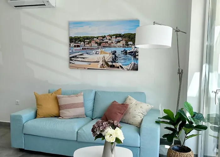 Blue Bay Apartment Nerezine med 1 sovrum ligger cirka 5 minuters gångavstånd från Galboka-stranden och har utsikt över gatan. Gästerna kan besöka Chapel of Saint Mikul cirka 2 km bort.